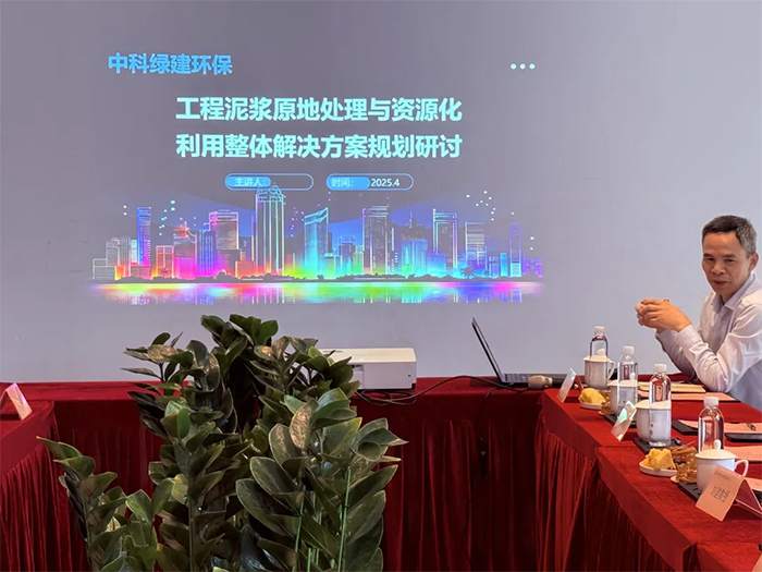 會議伊始,中科綠建總經理圍繞“國內泥漿處理行業痛點”作開場報告,指出當前工程泥漿處理普遍存在運輸成本高、二次污染風險大、資源利用率低等難題。他強調,泥漿原地處理與資源化利用是破解行業瓶頸、實現循環經濟的關鍵方向,需以技術創新驅動全產業鏈升級。